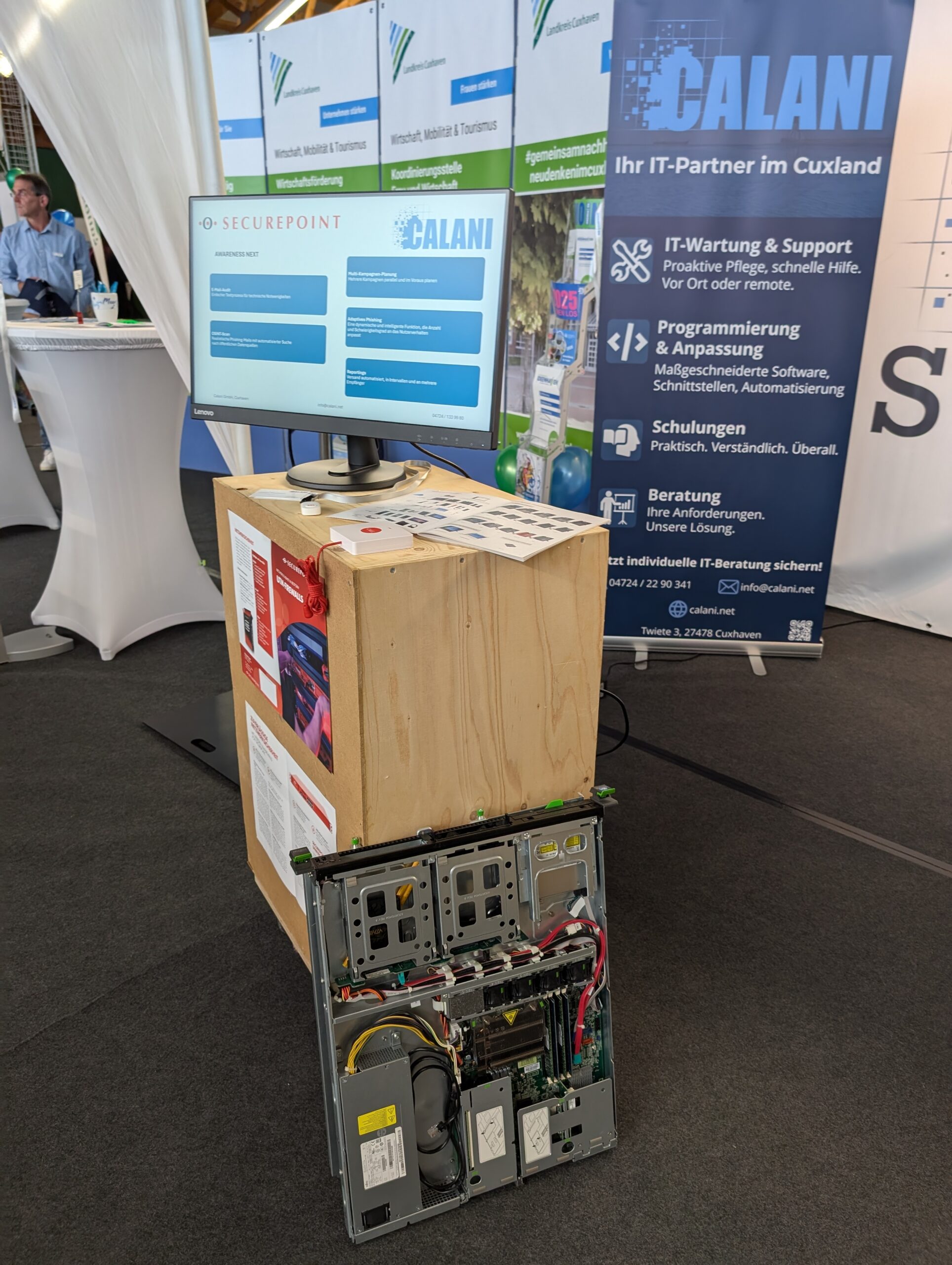 An unserem Stand hatten Besucher die Möglichkeit, uns persönlich kennenzulernen und sich zu Themen wie IT-Sicherheit, Netzwerken, Cloud-Lösungen und Open-Source-Software beraten zu lassen. Es war uns eine Freude, individuelle Fragen zu beantworten und praxisnahe Lösungen vor Ort vorzuführen.